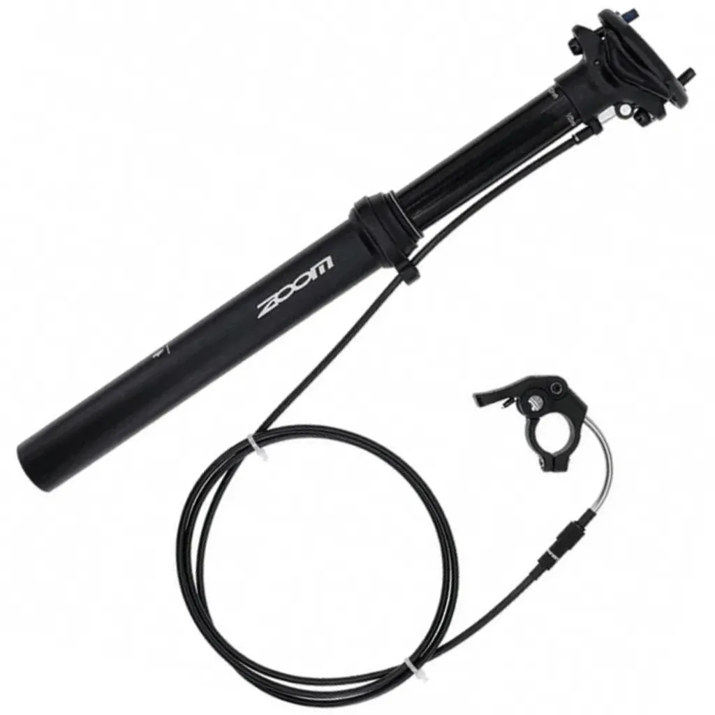 This seat post dropper is good value for money as it includes the external cabling. As well as including the external cable the dropper also comes with an activation switch. To raise the seat using the MTB dropper post simply hold the switch and remove your weight from he bike seat. Alternatively to lower the height of the bicycle seat sit on the seat while holding the switch in.