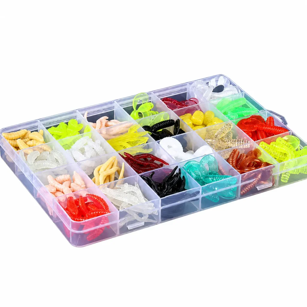 - Includes a mix of small soft bait grubs, curly tails, worm-style baits and maggot-style lures